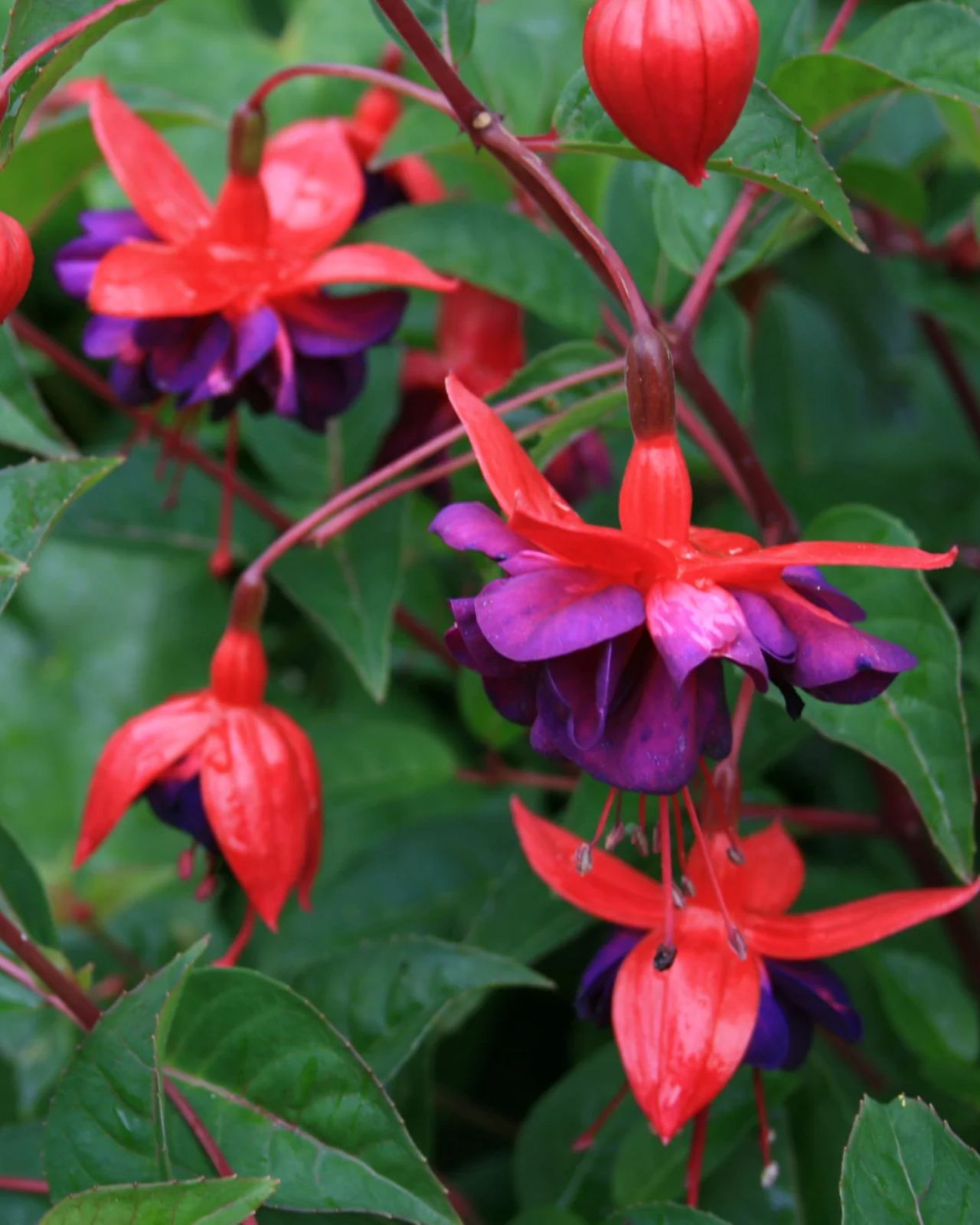 Nokarena fuksija, vidēji spēcīgs augums. Agra šķirne.