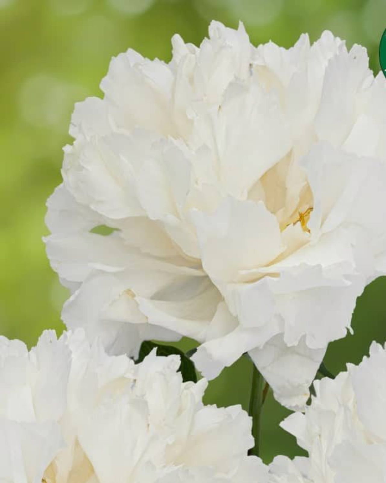 Agri ziedoša šķirne ar krēmbaltiem, pildītiem ziediem. Saknes izmērs 03/05
