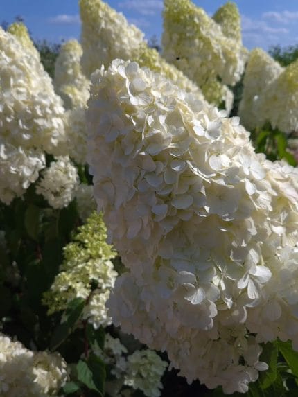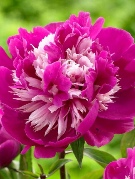 Maigi rozā, pildīti ziedi ar nedaudz sarkanīgām ziedlapas malām. Bagātīga ziedēšana. Saknes izmērs 03/05