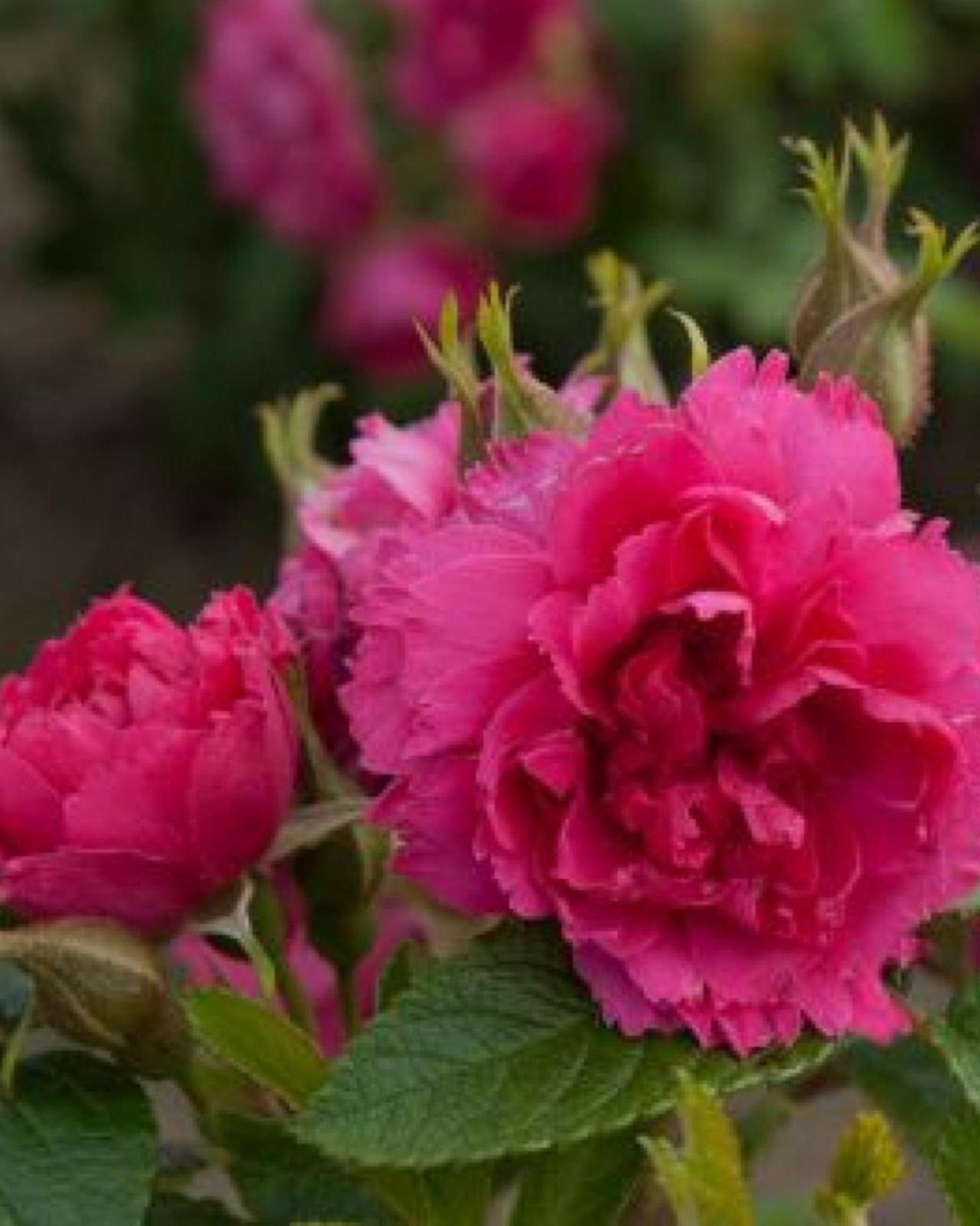 Sarkanrozā pildīts zieds bez smaržas vai ar vieglu aromātu. Nelieli, bet ļoti pildīti ziedi. Nedaudz krokaina lapotne. Divgadīgs kailsaknis. Potēts!