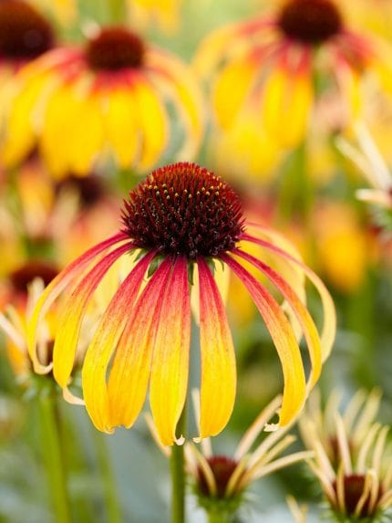 Labi sazarots augums, garas ziedkopas. Piemērota grieztajiem ziediem. Augums 100 cm.